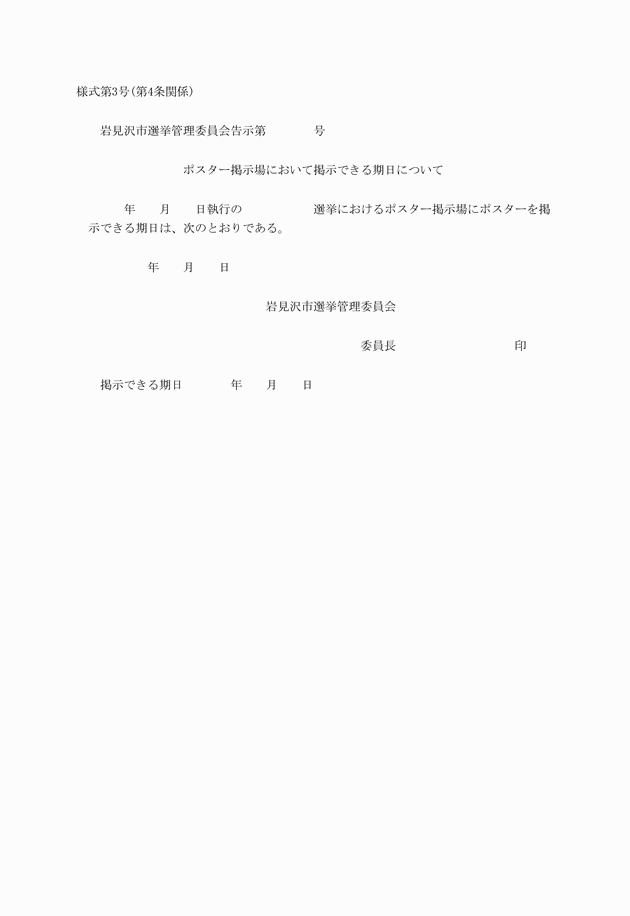 2 候補者が掲示場にポスターを掲示できる日を定める告示は、様式第3号によるものとする。