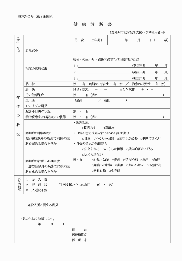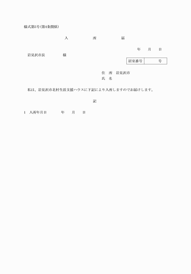 第5条 入所者は、生活支援ハウスを退去しようとするときは、退去する日の7日前までに退去届(様式第8号)を市長に提出しなければならない。