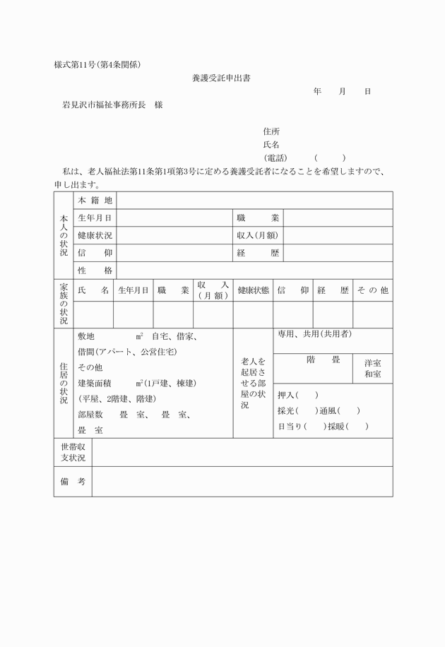 第4条 施行規則第1条の7の規定による申出は、養護受託申出書(様式第11号)によるものとする。