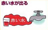 | 対策 | 一軒だけの場合は、開栓時の水をしばらく捨水するか、布設替え、あるいは老朽化した配管を取り替える。広範囲の場合は配水地域の管内洗浄および水質が安定するまで捨水する |