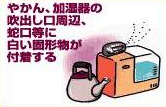 | 対策 | この現象が発生した場合は、食酢を約10倍に薄めて入れ、1時間程放置後、柔らかいブラシで洗う。なお、お湯を何回も注ぎ足して使用すると発生しやすくなる。 |