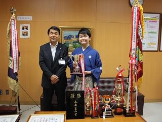 標記大会で優秀な成績を収めた横田さんが教育長を訪問されました。「全国大会ベスト3までが北海道からの出場者だった」「初めて出た大会で優勝してとても嬉しかった」と大会を振り返ってくれました。