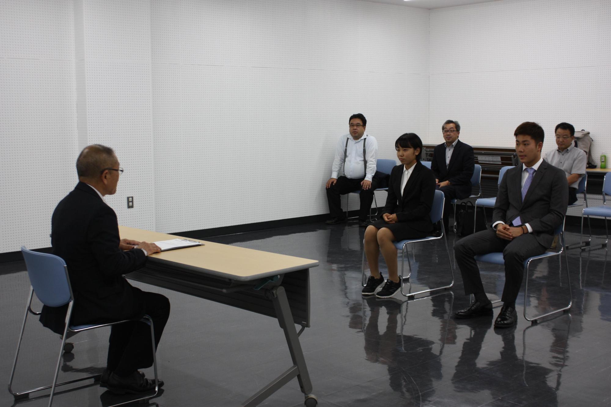 標記大会において優秀な成績をおさめ、全国大会へ出場したみなさんが教育長を訪問されました。全国大会では惜しくも予選敗退となりましたが、引地さんは、「記録を残したいという気持ちがあったので悔しい。レベルの高い人達と競技ができて良かった。陸上を今後も続けていきたい」山下さんは、「現状の課題に取り組み、普段のトレーニングも強化したい。来年は決勝まで進めるように頑張りたい」と前向きに今後の目標を語ってくれました。