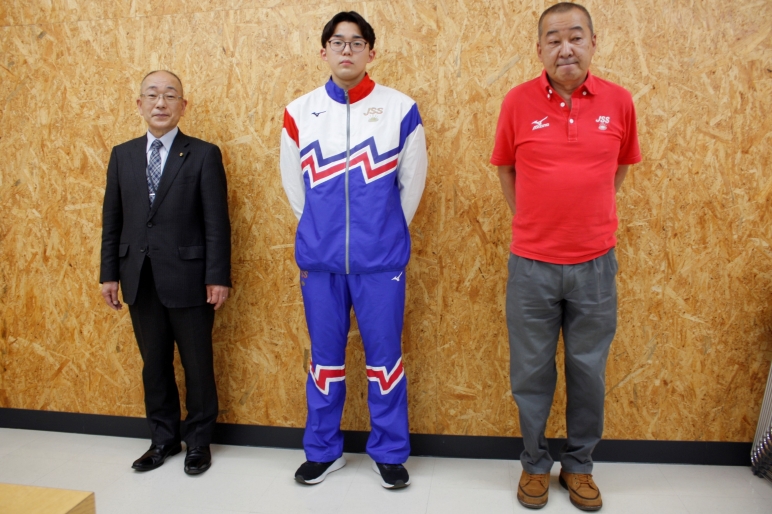 標記全国大会に出場した諏訪 遥希さんが教育長を訪問されました。全国大会について「トップスイマーから学んだものがたくさんあった」と話してくれました。「体幹トレーニングを続けていきたい」と今後の目標を語ってくれました。