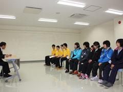南北海道予選会において団体優勝し、標記大会に出場される選手の皆さんが、報告のために教育長を訪問されました。選手を代表し、遠藤さんは「2年生は最後の大会なので、悔いの残らないような戦いをしたい」、花田さんは「少しでも良い試合をして勝てるようにしたい」と抱負を語ってくれました。