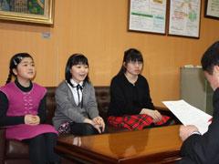 標記国際コンクールで優秀な成績を収めた皆さんが、報告のために教育長を訪問されました。アジア大会で金賞を受賞した坂崎さんは「違うコンクールでも良い賞を取りたい、将来はピアノを弾く仕事につきたい」と語ってくれました。