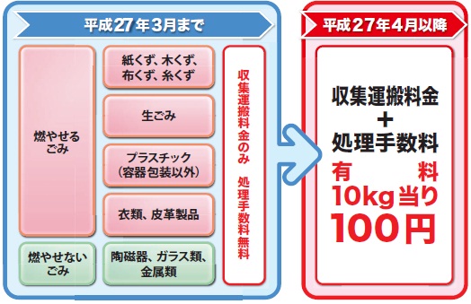 - 処理手数料も有料になります(10キログラム当たり100円)